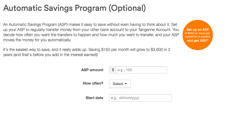 3 - 於 Tangerine 網路銀行填資料開啟 Chq 帳戶,填寫過程記得填入 Orange Key:41822232S1,才會收到額外 $25 獎勵。